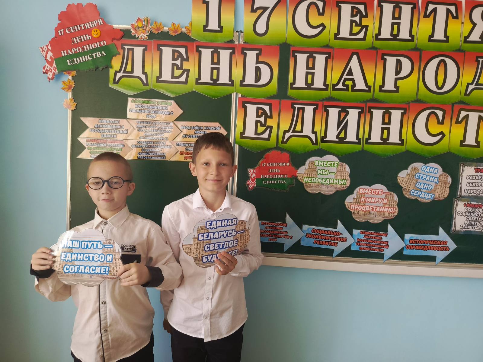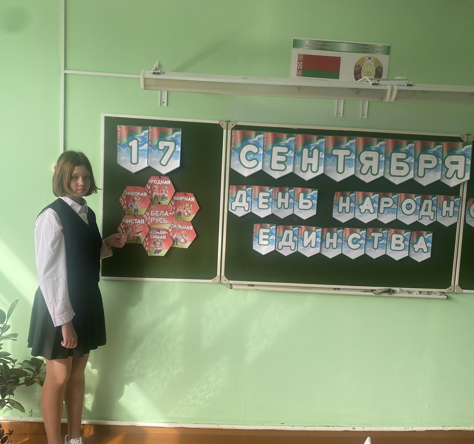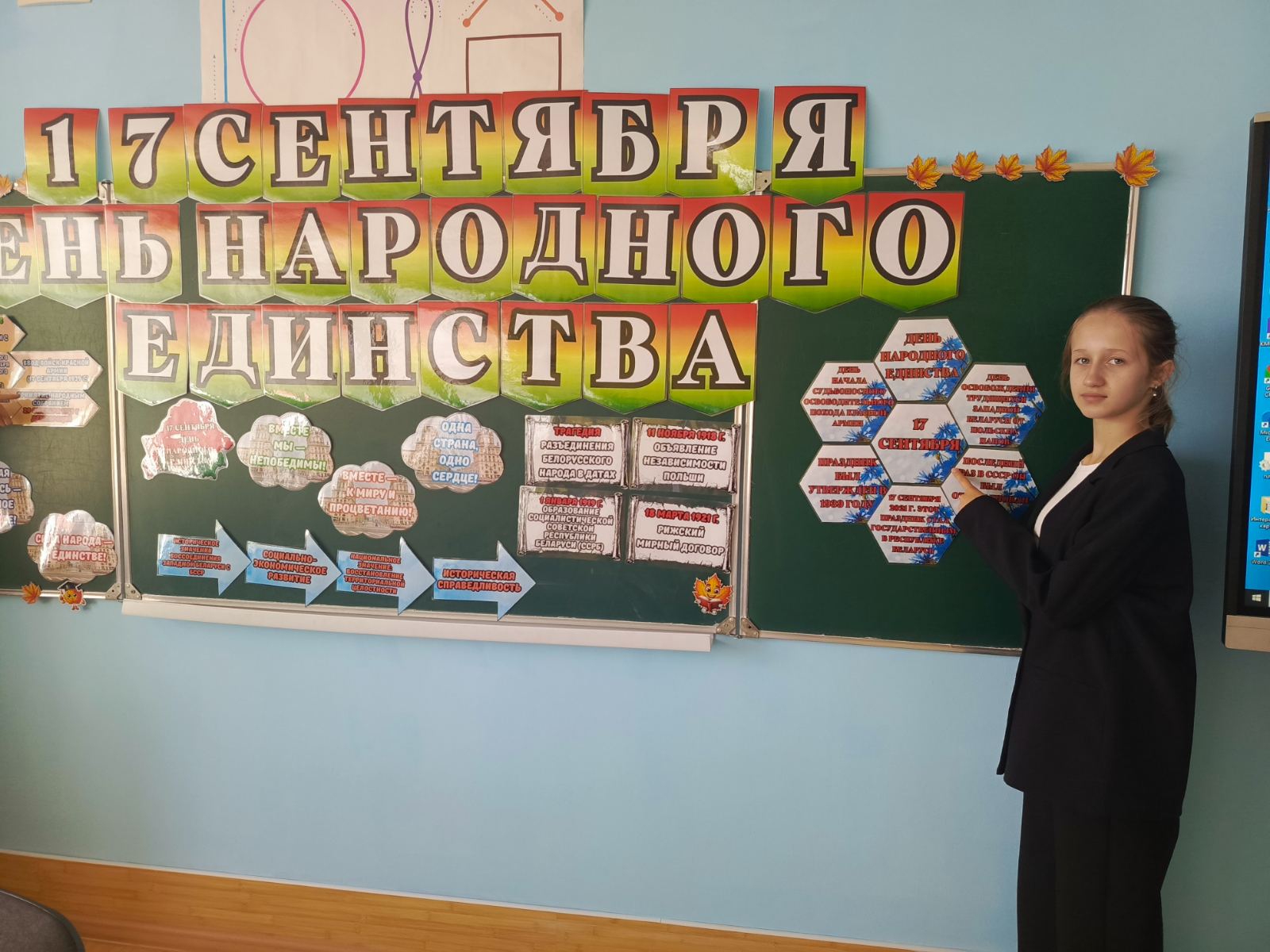 17 сентября 2025 г. прошел урок, посвященный Дню народного единства. Урок направлен на формирование у учащихся уважительного отношения к историческому прошлому Беларуси, понимания учащимися смысла и значения государственного праздника – Дня народного единства, важности единства белорусского народа для сохранения сильного и независимого государства; воспитание гражданственности, патриотизма, ответственности и готовности действовать во благо своей Родины.