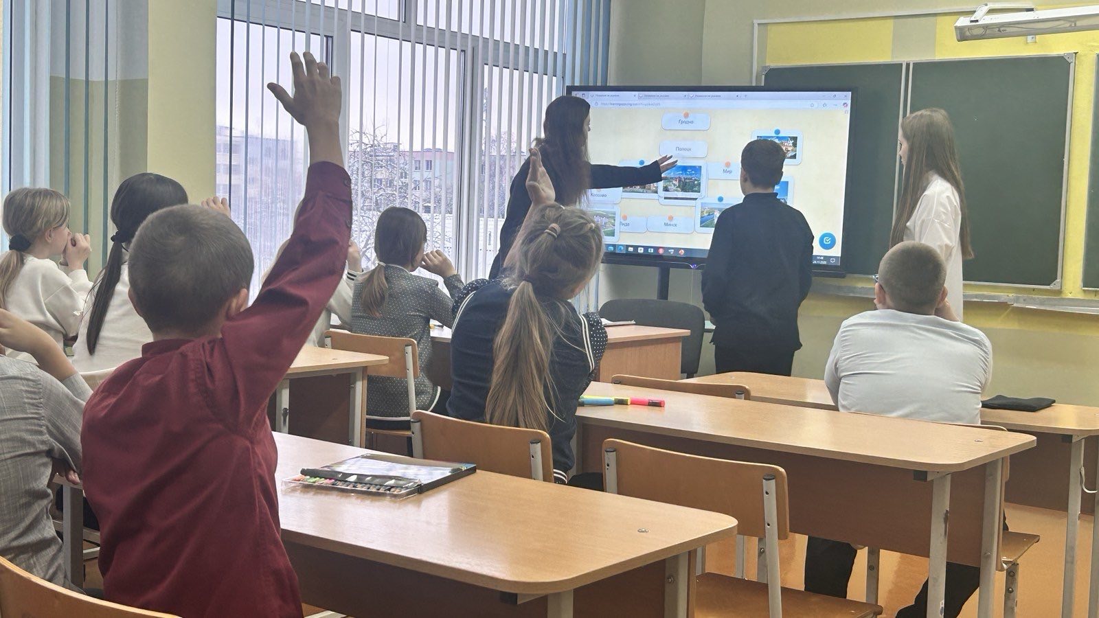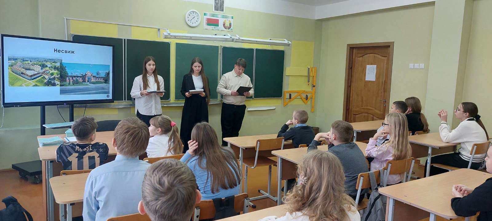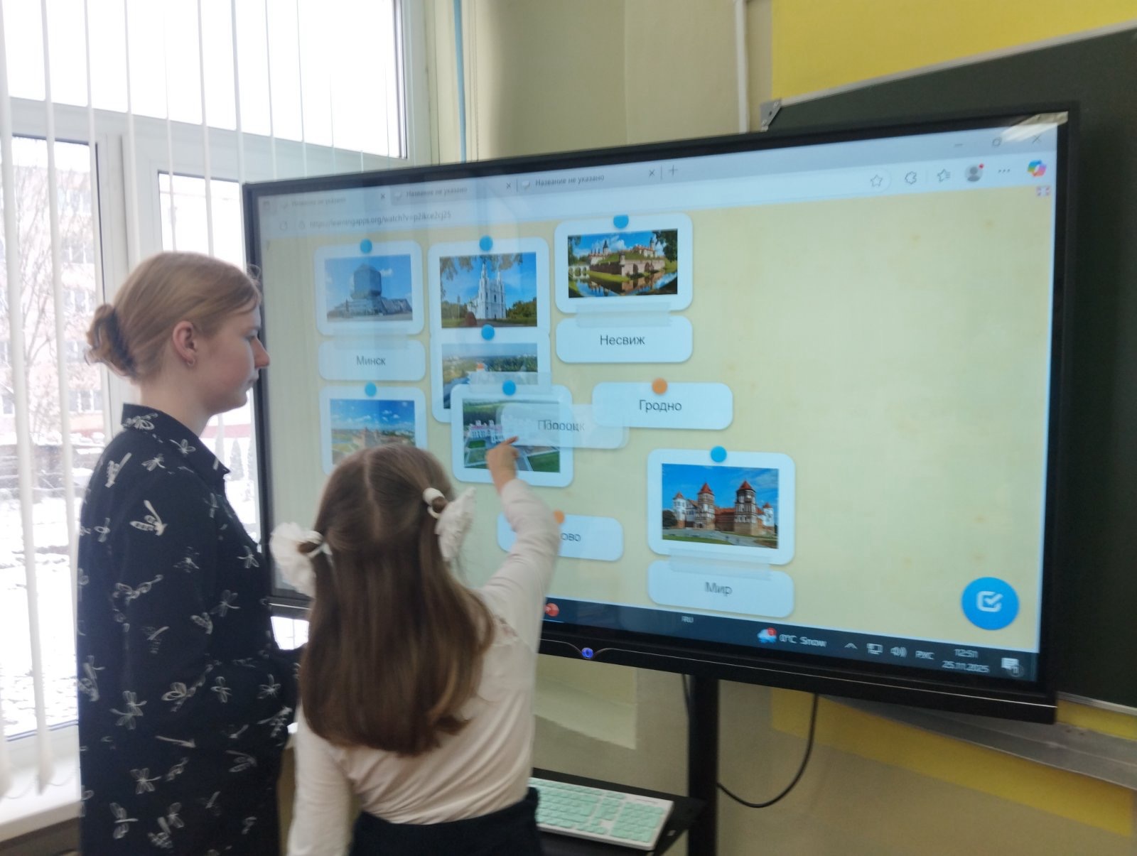 С 24.11 по 28.11.2025 г. в средней школе №3 г. Дятлово имени И.Ю.Филидовича в рамках реализации инновационного проекта «Внедрение модели формирования толерантного детского сообщества через организацию художественно-творческой деятельности, основанной на традициях и ценностях белорусского народа» учащиеся профильной группы педагогической направленности под руководством учителя Соловьёвой С.В. провели виртуальную экскурсию по культурным центрам Беларуси для 1-5 классов. Учащиеся 10-11 классов попробовали себя в роли педагогов: познакомили участников инновационного проекта с понятием «культура» и «культурный центр», рассказали о самых интересных исторических местах белорусских городов, показали красочные фотографии архитектуры и духовных ценностей страны. Учащиеся смогли проверить полученные знания на практике с использованием интерактивной доски путём разгадывания кроссвордов, соотнесения названия города с главным историческим местом. В завершение экскурсии каждый участник почувствовал себя мастером старинного города: ребята раскрашивали глиняные кувшины, горшки, игрушки. Мероприятие способствовало воспитанию уважения к историческому и культурному наследию Беларуси, формированию чувства гордости за родной край и национальную идентичность.
