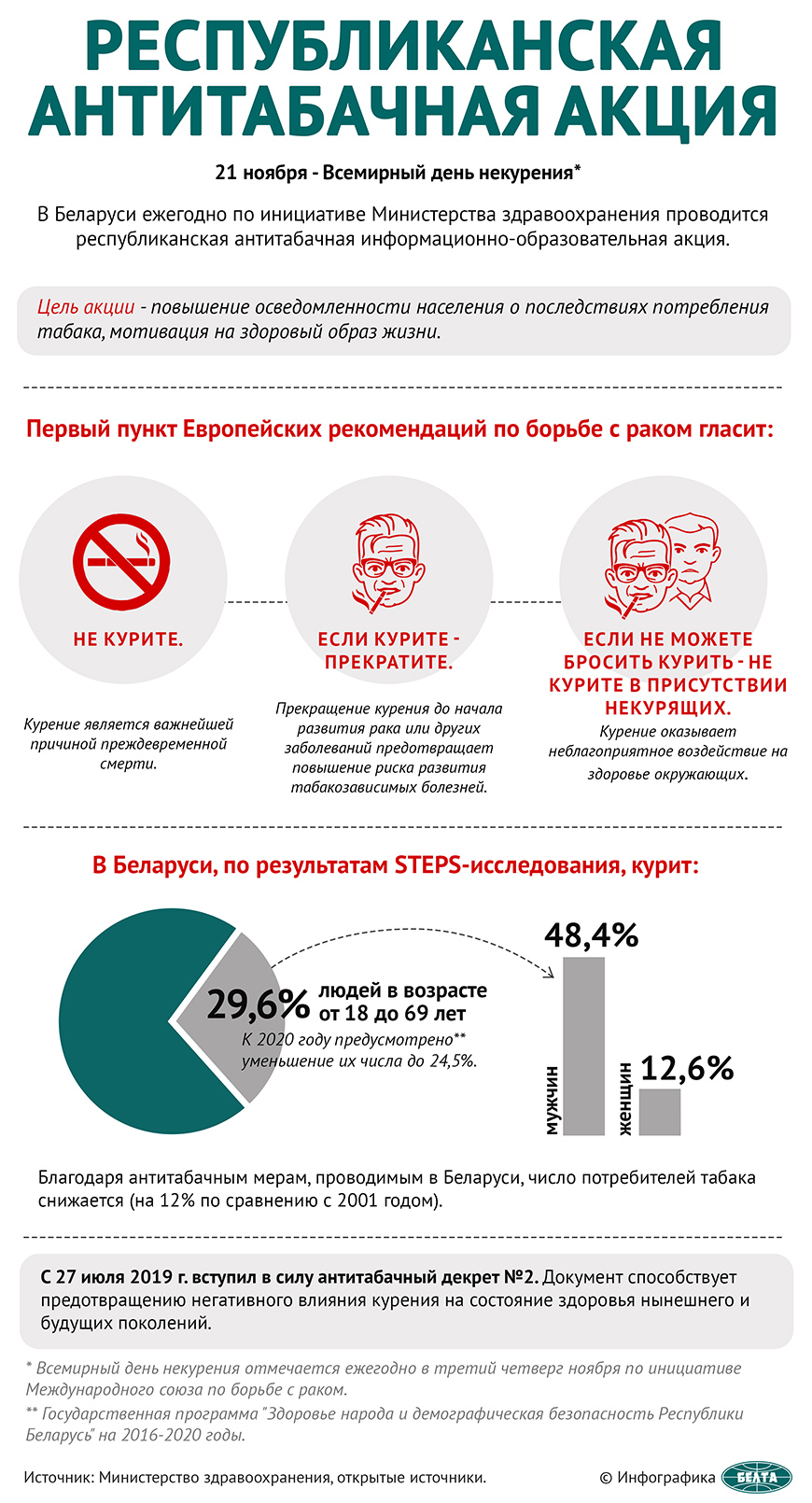 С 3 по 21 ноября 2025 года в Беларуси проходит республиканская антитабачная акция «Беларусь против никотина – время вдохнуть по-настоящему»