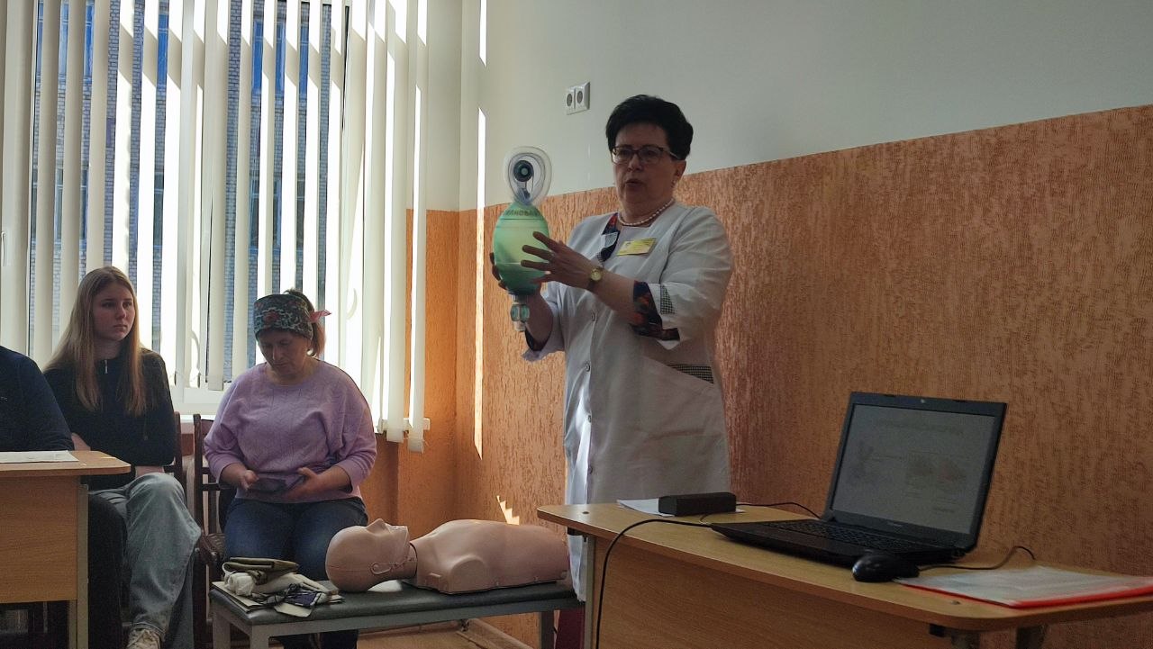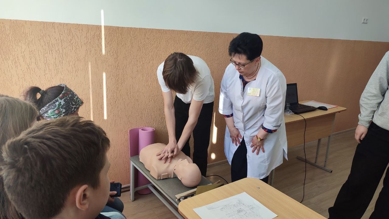 Ребята узнали, как распознать клиническую смерть, почему счет идет на минуты и как правильно действовать до приезда скорой помощи. Самым волнительным этапом стала отработка навыков на современных манекенах-тренажерах. Каждый десятиклассник попробовал свои силы в непрямом массаже сердца и искусственной вентиляции легких.
