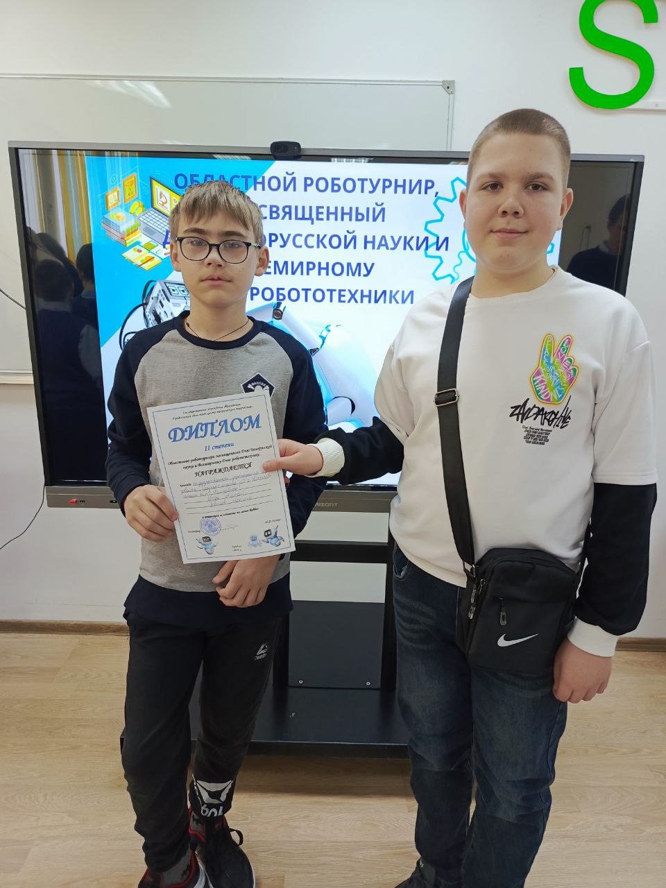 Гордость нашей школы! Учащиеся 5 «В» класса Иода Алексей и Грошев Максим продемонстрировали высокий уровень технических знаний и инженерного мышления, завоевав диплом II степени на престижном областном роботурнире.