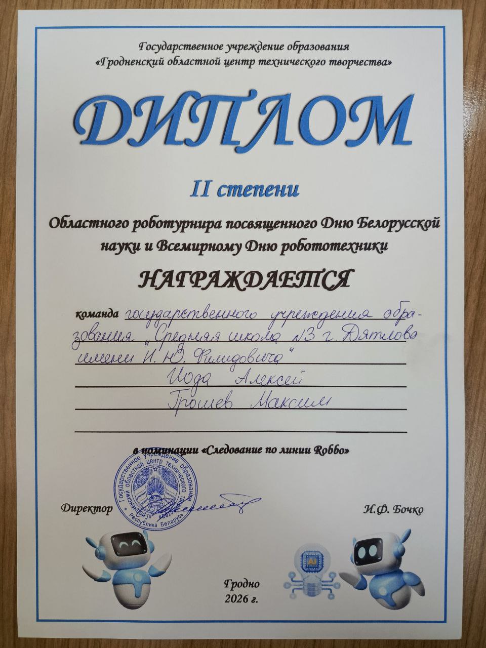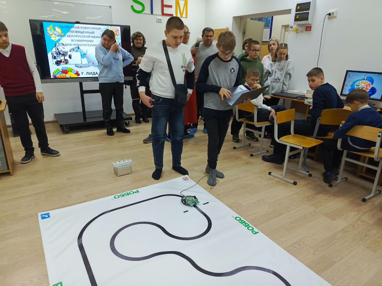 Соревнования, посвящённые Дню Белорусской науки и Всемирному дню робототехники, прошли 28 января 2026 года на базе ГУО «Гродненский областной центр технического творчества» в городе Лида. В этом году турнир собрал самые талантливые команды со всей Гродненской области, и наши ребята достойно представили школу в номинации «Следование по линии Robbo».