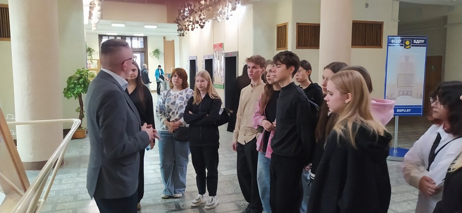 Учащиеся профильных групп педагогической направленности приняли участие в проекте "Студент-на-один-день-в-БГПУ". Для них была организована экскурсия по университету. Затем ребят познакомили с особенностями поступления на факультет социальной педагогики . Кроме того ребята побывали в роли студентов на самых что ни есть настоящих лекциях, где им были предложены профориентационный тренинг «Найди свой профессиональный путь», а также мастер-класс и презентация работы волонтерского клуба «Филантроп».