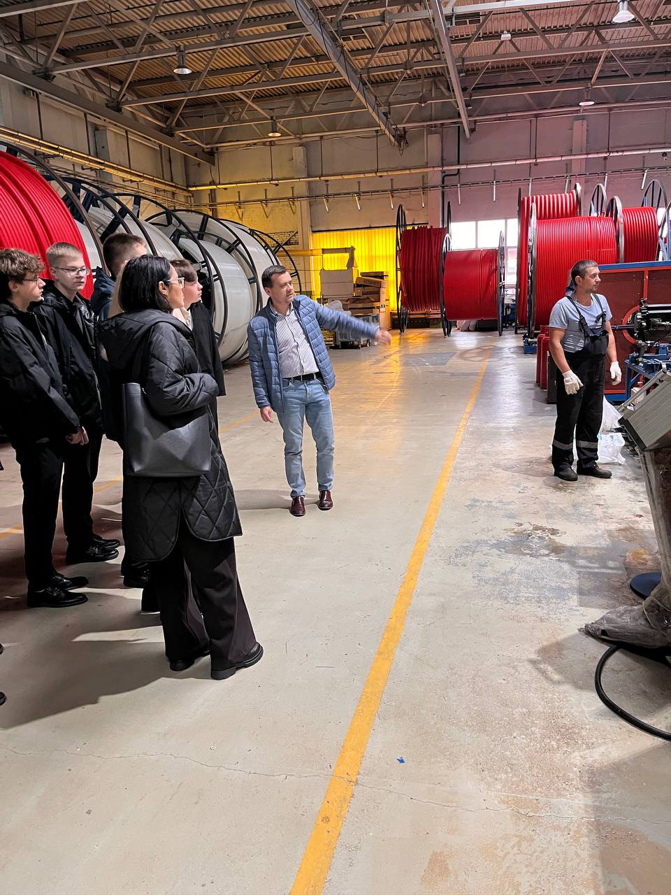 С первых минут ребят впечатлила атмосфера настоящего промышленного объекта: просторные цеха, автоматизированные линии, строгие стандарты безопасности. Представители компании тепло встретили школьников и провели подробную экскурсию по основным участкам производства — от складов сырья до участков литья и упаковки готовой продукции.