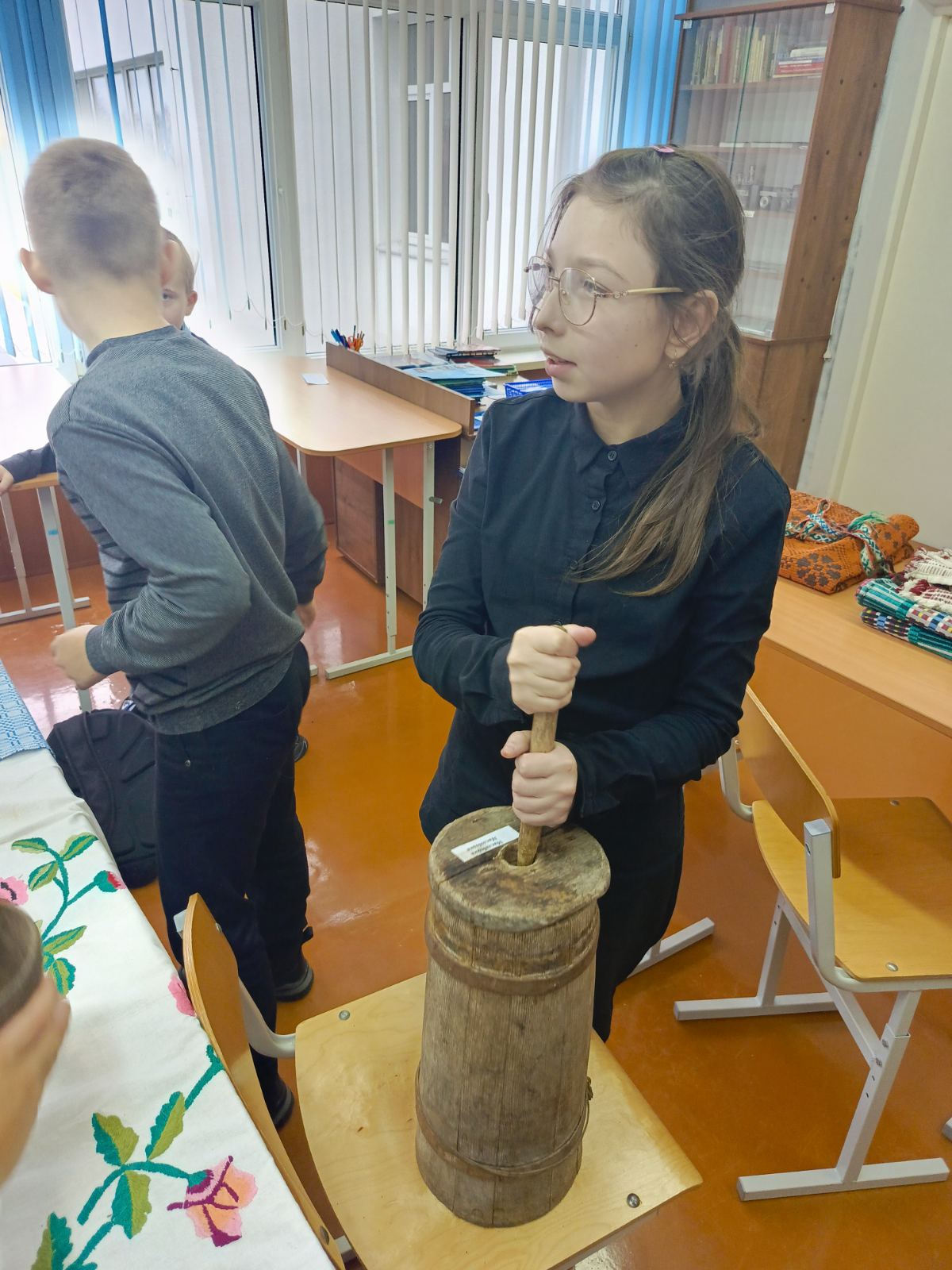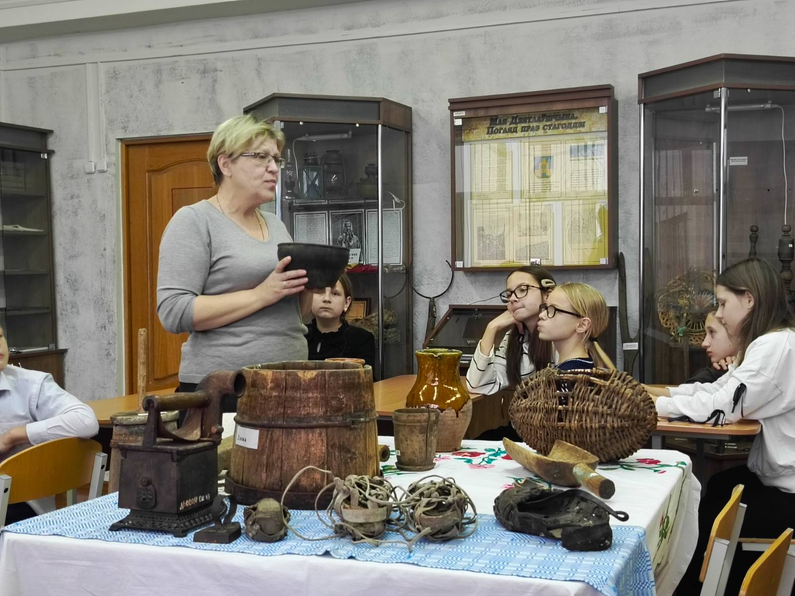 26.11.2025 г. в государственном учреждении образования «Средняя школа № 3 г. Дятлово имени И. Ю. Филидовича» в рамках реализации инновационного проекта «Внедрение модели формирования толерантного детского сообщества через организацию художественно-творческой деятельности, основанной на традициях и ценностях белорусского народа» прошла квест-игра "Секреты и загадки Дятловщины". Руководитель музея Савчиц Е.М. познакомила участников инновационного проекта 5 "Б", 5 "В" классов с ремёслами, существовавшими на территории Дятловщины, старинными предметами быта и орудиями труда. Учащиеся приобщились к истории наших предков, к обычаям и традициям белорусского народа.