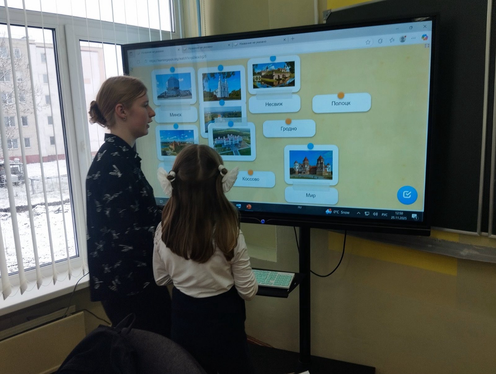 С 24.11 по 28.11.2025 г. в средней школе №3 г. Дятлово имени И.Ю.Филидовича в рамках реализации инновационного проекта «Внедрение модели формирования толерантного детского сообщества через организацию художественно-творческой деятельности, основанной на традициях и ценностях белорусского народа» учащиеся профильной группы педагогической направленности под руководством учителя Соловьёвой С.В. провели виртуальную экскурсию по культурным центрам Беларуси для 1-5 классов. Учащиеся 10-11 классов попробовали себя в роли педагогов: познакомили участников инновационного проекта с понятием «культура» и «культурный центр», рассказали о самых интересных исторических местах белорусских городов, показали красочные фотографии архитектуры и духовных ценностей страны. Учащиеся смогли проверить полученные знания на практике с использованием интерактивной доски путём разгадывания кроссвордов, соотнесения названия города с главным историческим местом. В завершение экскурсии каждый участник почувствовал себя мастером старинного города: ребята раскрашивали глиняные кувшины, горшки, игрушки. Мероприятие способствовало воспитанию уважения к историческому и культурному наследию Беларуси, формированию чувства гордости за родной край и национальную идентичность.