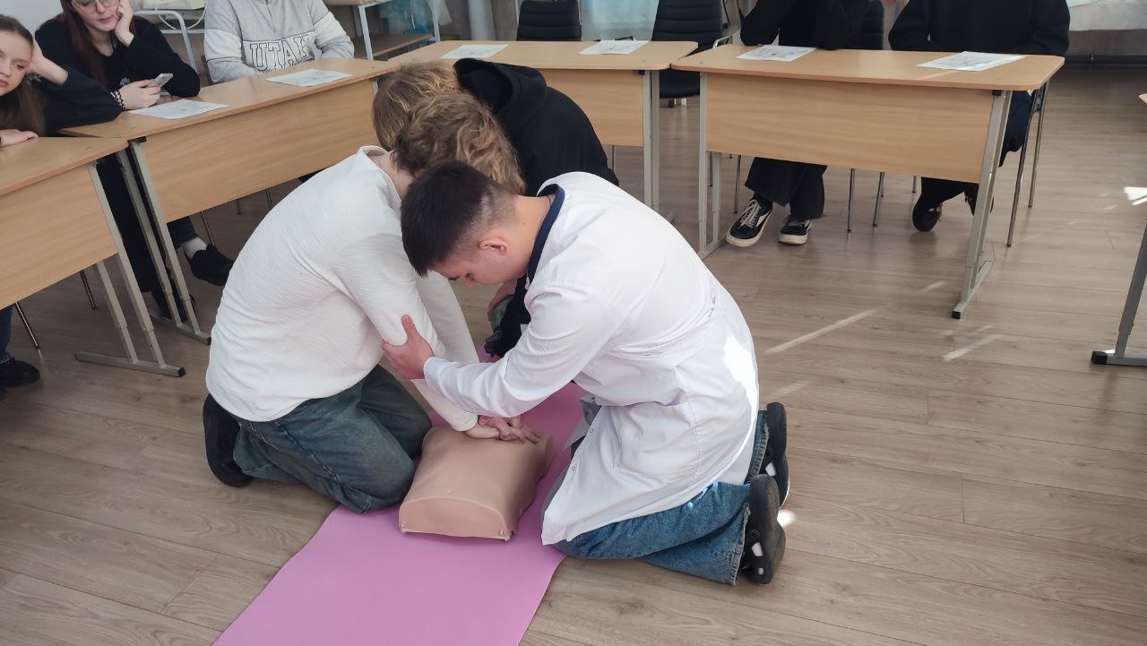 Ребята узнали, как распознать клиническую смерть, почему счет идет на минуты и как правильно действовать до приезда скорой помощи. Самым волнительным этапом стала отработка навыков на современных манекенах-тренажерах. Каждый десятиклассник попробовал свои силы в непрямом массаже сердца и искусственной вентиляции легких.