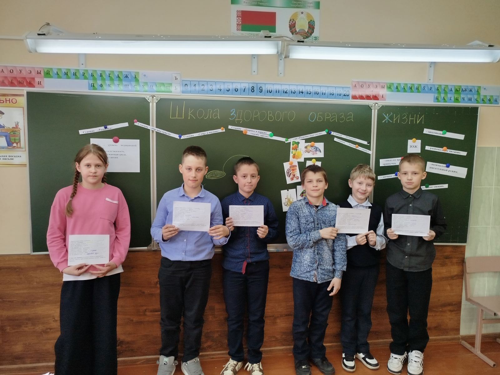 В шестой школьный день учащиеся четвёртых классов участвовали в спортивной викторине "Школа здорового образа жизни". Ребята "путешествовали" по следующим станциям: "Разминка", "Органы чувств", "Спорт и питание", "Здоровье в порядке - спасибо зарядке", "Разноцветные столы", "Заверши пословицу", "Ромашка". При помощи игры ребята смогли закрепить свои знания и приобрести новые о том, как нужно заботиться о своем здоровье! Быть здоровым - естественное желание любого человека.