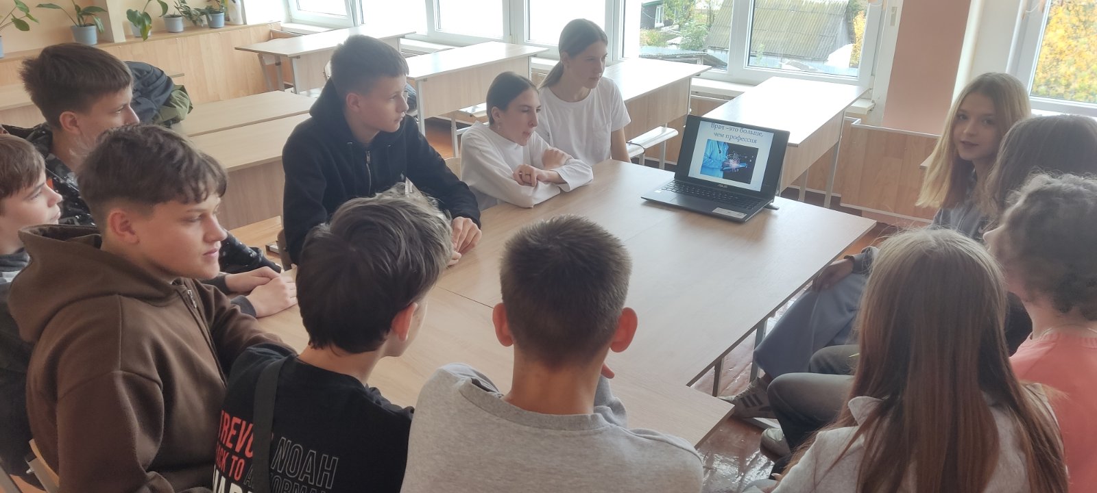 Сегодня,18 октября, в рамках проведения шестого школьного дня с учащимися 9 класса была проведена виртуальная экскурсия "В мире профессий". К этой встрече ребята подготовили презентации. Одна из них была посвящена профессии врача, в другой рассказывалось о самых востребованных профессиях. После просмотра презентаций учащихся обсудили, что их особенно привлекло в информации. Многие поделились своими планами на будущее. Разговор оказался очень полезным.