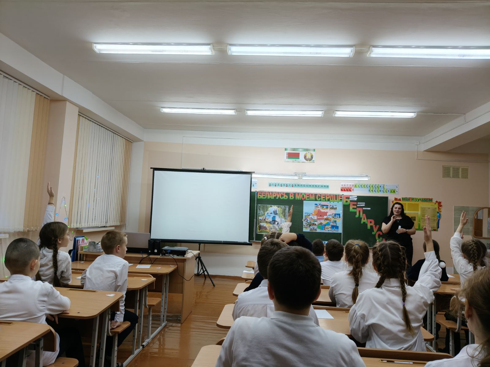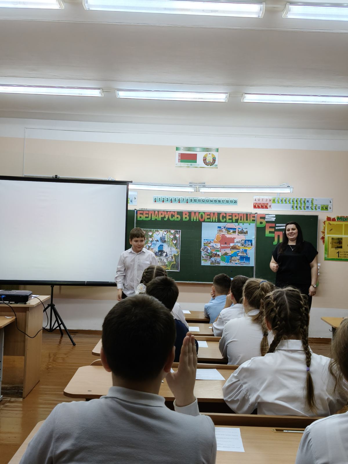 Ключевым моментом встречи стал практический блок – интерактивная викторина «Беларусь в моём сердце», организованная воспитателем Быстрицкой Л.А. для учащихся 4 «В» класса, посещающих группу продленного дня. Учащиеся с живым интересом включились в викторину, продемонстрировав осознанное понимание истории и культурного наследия Беларуси.