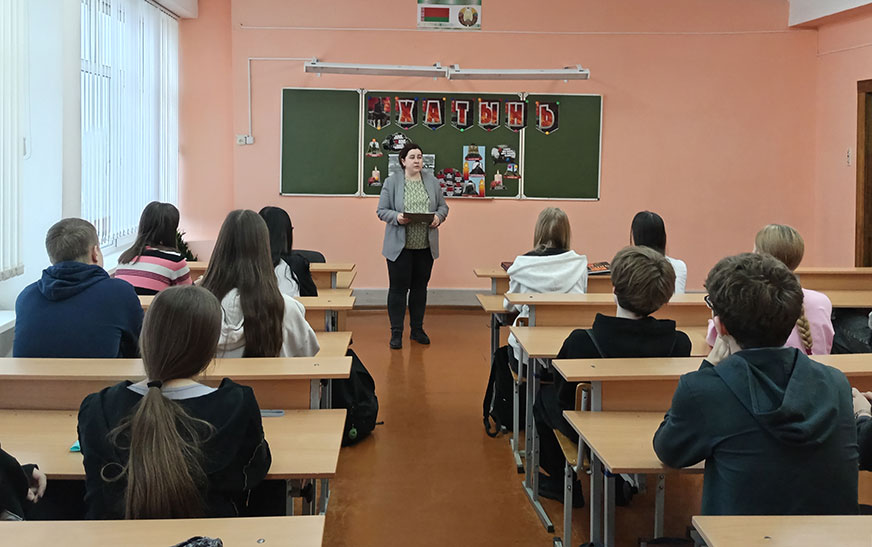 Cупрацоўнікі Дзятлаўскай раённай бібліятэкі наведалі cярэднюю школу №3 г. Дзятлава імя І. Ю. Філідовіча. Сустрэча была прысвечана адной з самых балючых старонак нашай гісторыі – трагедыі спаленых вёсак. Гісторыка-патрыятычны час пад назвай “Сумны набат Хатыні” стаў для вучняў 11 класа не проста ўрокам мінулага, а шчырым напамінам пра тое, як важна берагчы мір і шанаваць подзвіг свайго народа. Падчас сустрэчы бібліятэкар нагадала, што хатынскі звон, які раздаецца над былымі вуліцамі кожныя 30 секунд – гэта не проста мелодыя, а вечны напамін аб сотнях спаленых вёсак і мільёнах ахвяр. Вучні праслухалі гісторыю адзінага дарослага сведкі тых падзей – Іосіфа Камінскага, які стаў прататыпам знакамітага помніка “Няскораны чалавек”.